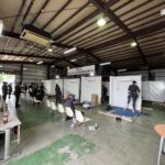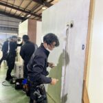 今回は全国のソーデン社の各営業所や協力企業様から総勢15名が集まり、実際にエアコンの取付工事を行いました。