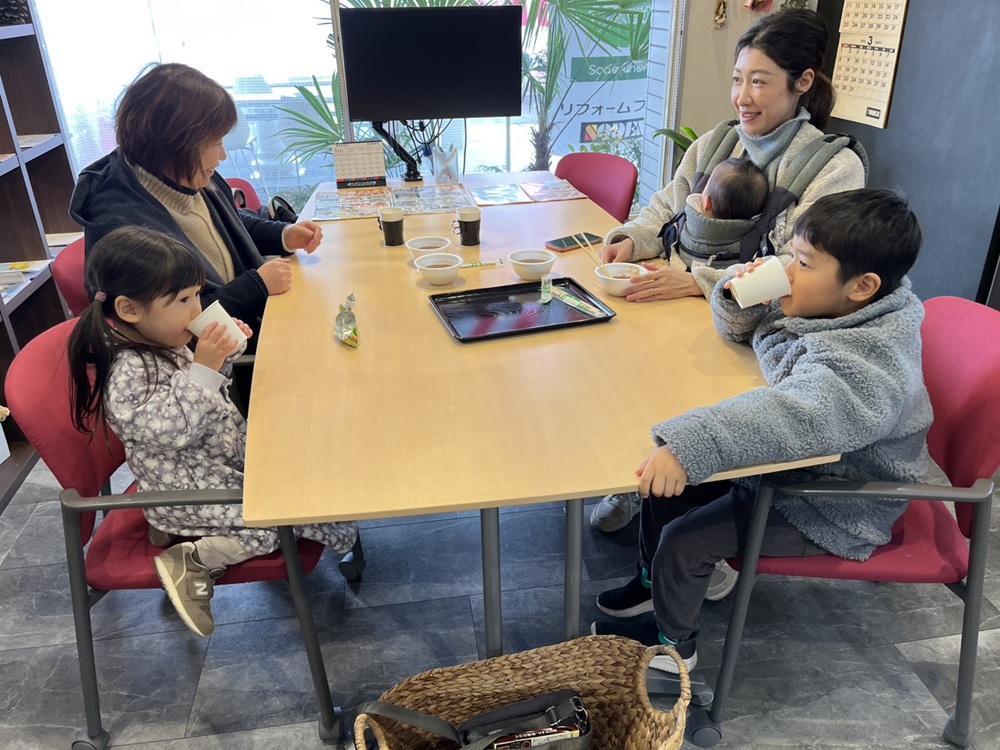 リフォームプラザでは、リフォーム相談会の他、つきたてお餅のぜんざい・ショールーム2階を探索するクイズに答えて全問正解の方に素敵な景品プレゼント!・太鼓の達人バトルに挑戦(お子様限定)・回った秒数で景品がもらえるこままわしチャレンジ・電動カートに乗ろう・うさぎのふれあいコーナーなどの楽しい催しも開催しました。
