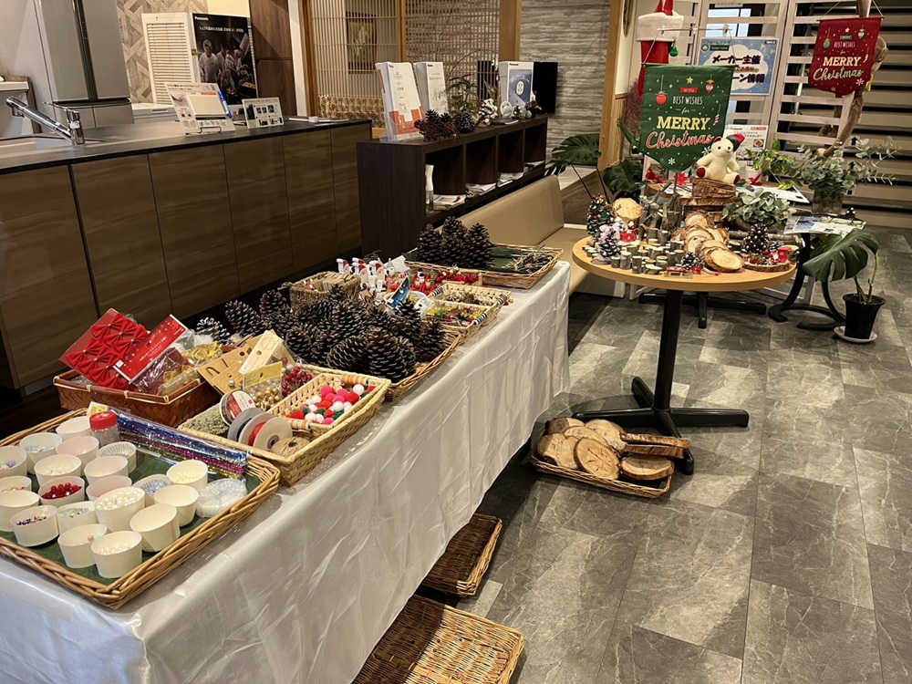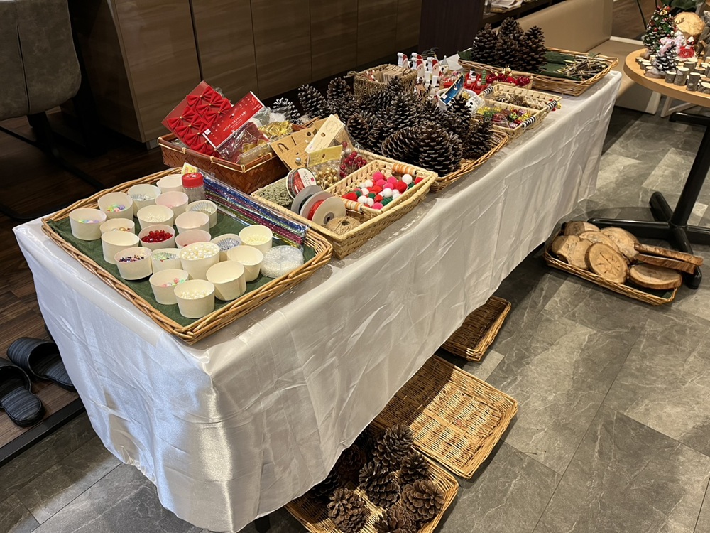 参加無料のツリーだけなら1時間程度で500円のミニツリーセットだと2時間弱かかります。(個人差が有ります)