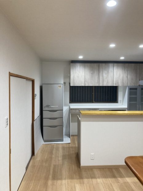昔ながらのダイニングキッチンとお隣の和室を繋げて、壁付けキッチンから対面キッチンに。