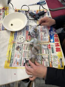 1日目のX’masリフォーム相談会が終了しました。松ぼっくりツリー作りは午前中は残念ながら体調不良で1組キャンセルになりましたので、小林は前から気になっていた松ぼっくりの壁かけを作成してみました。